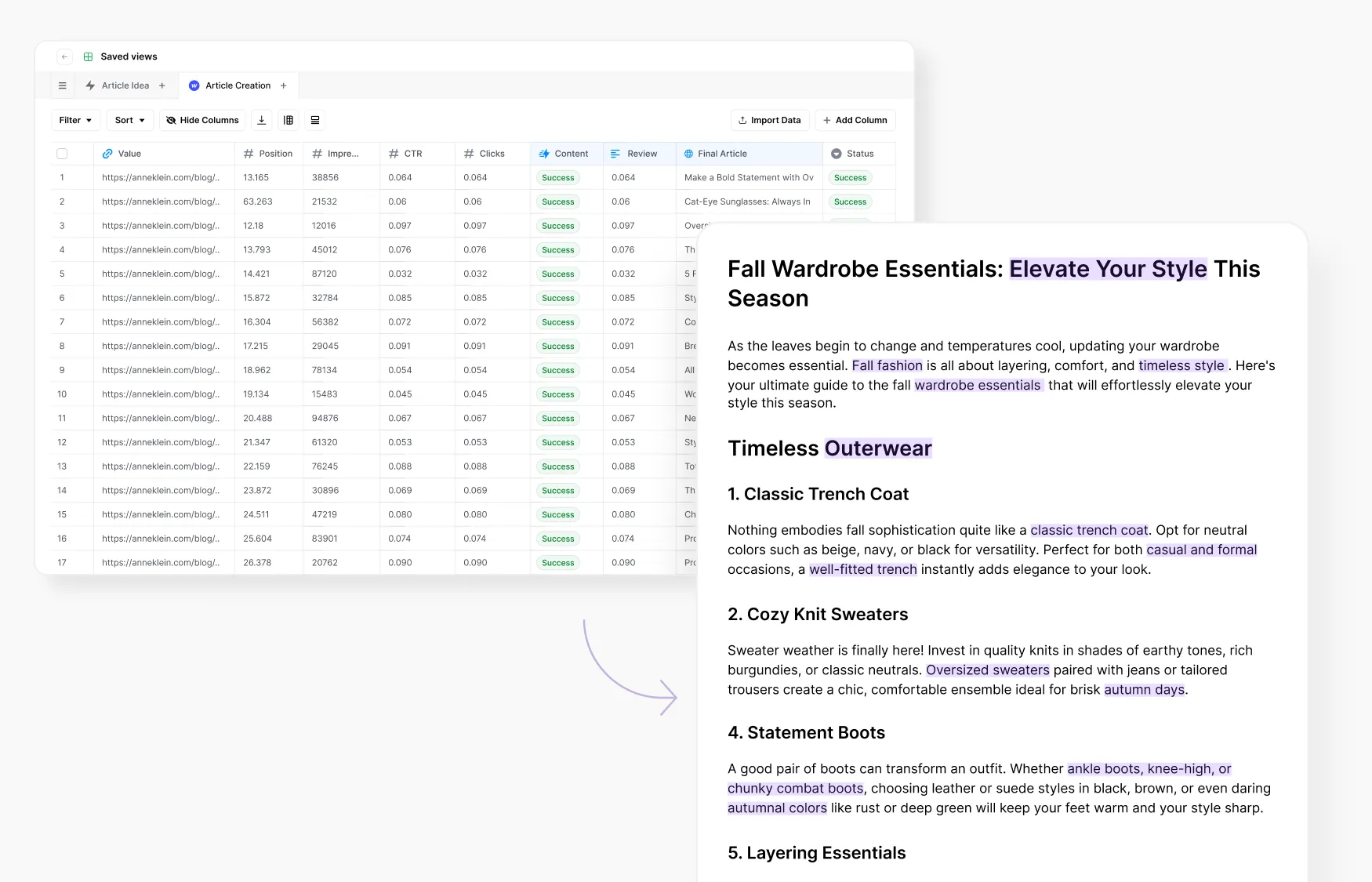 We power detailed briefs and enriched, authoritative articles designed to perform — for humans, AI, and search. Help your clients win in SEO, AEO, and beyond.